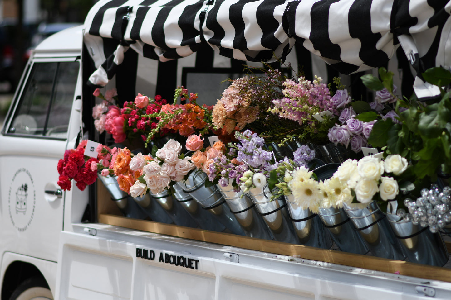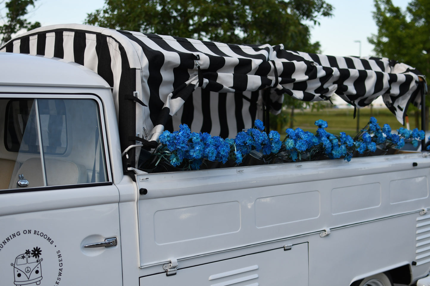 The ultimate Running on Blooms experience: rent our vintage Volkswagen flower truck filled with flowers for your event!